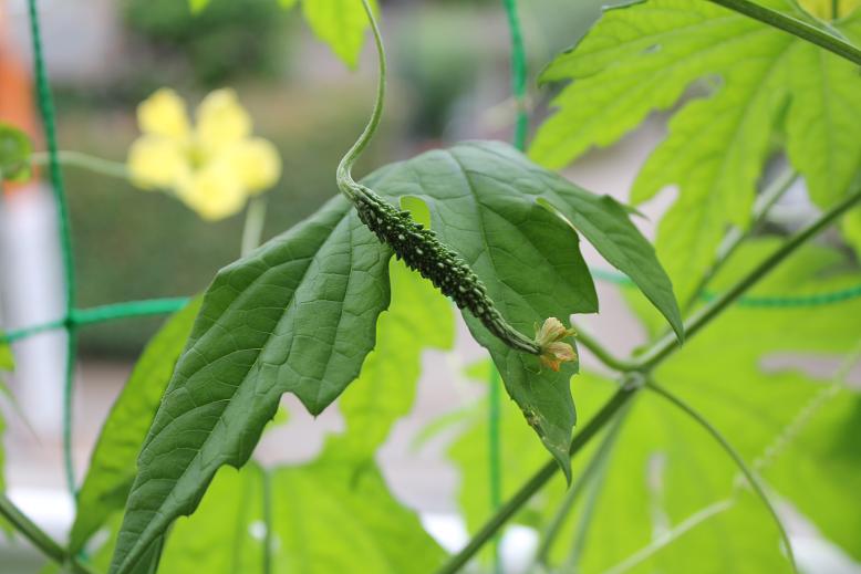 ゴーヤの花が咲いて、小さな実もついてきました!