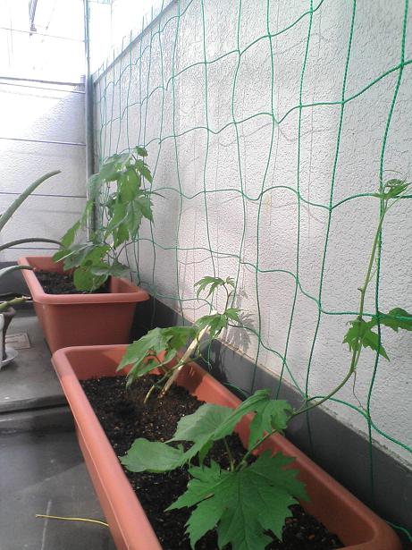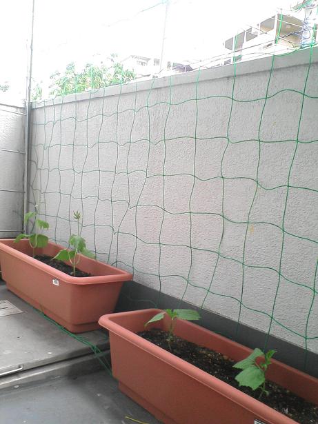 ベランダ菜園のゴーヤがどんどん伸びてきた
