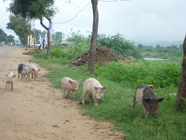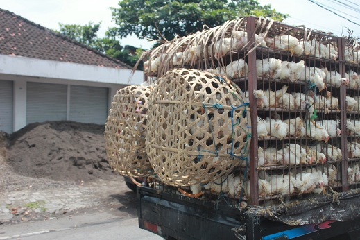 バリの中心街はとっても渋滞していて、日本と変わらないです・・・ニワトリもぐったりです
