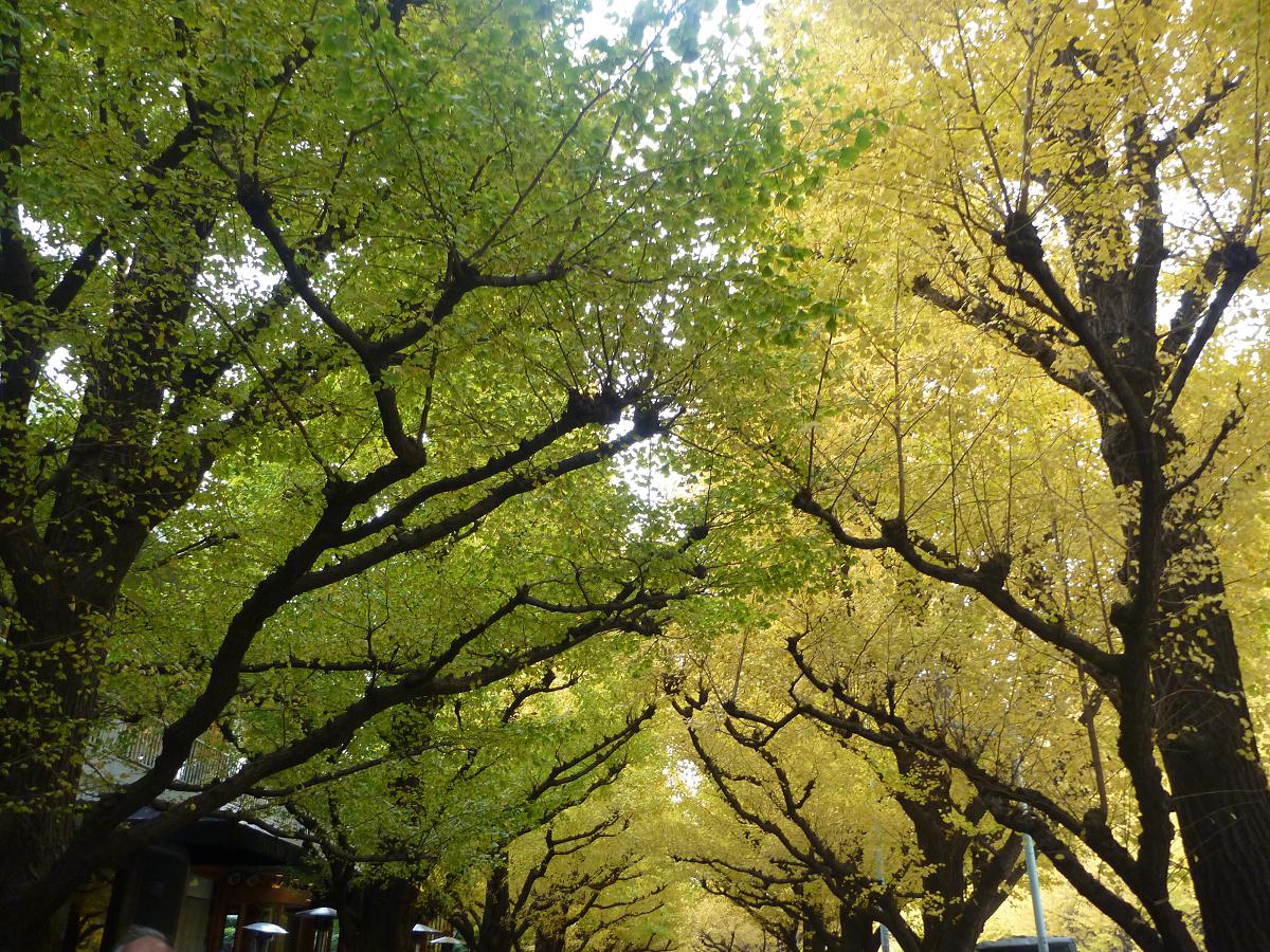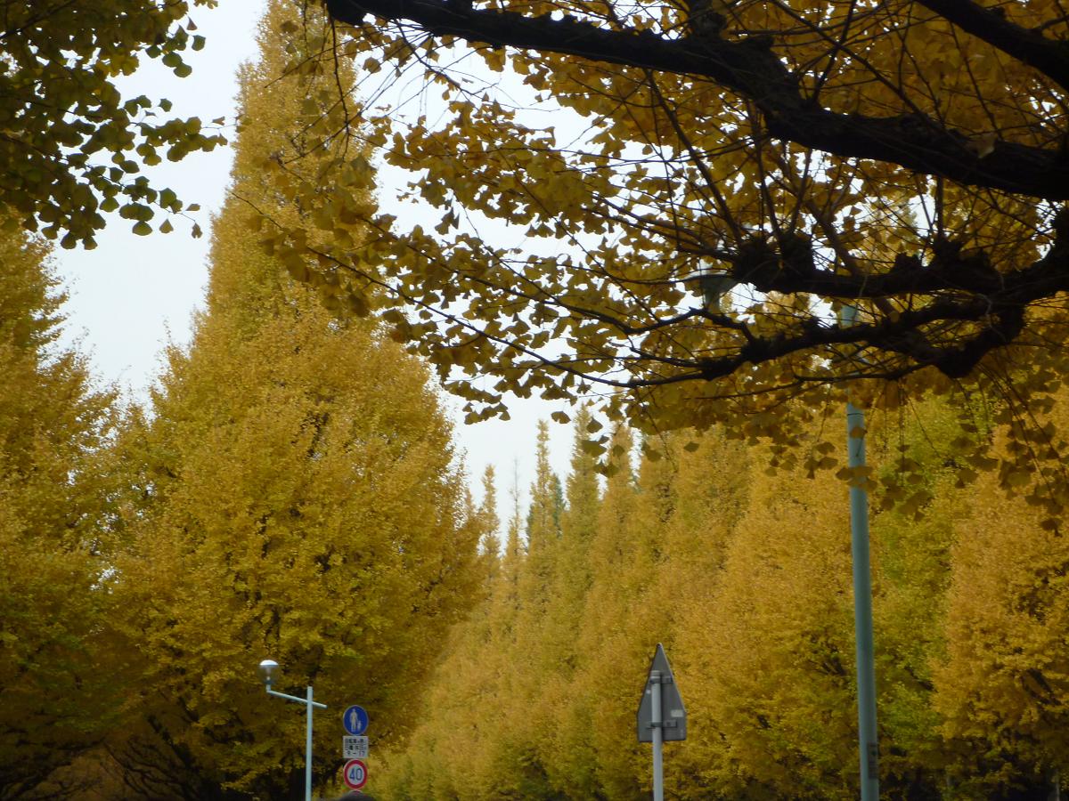 綺麗な黄色と緑のコントラストで素敵な並木道になっていました。