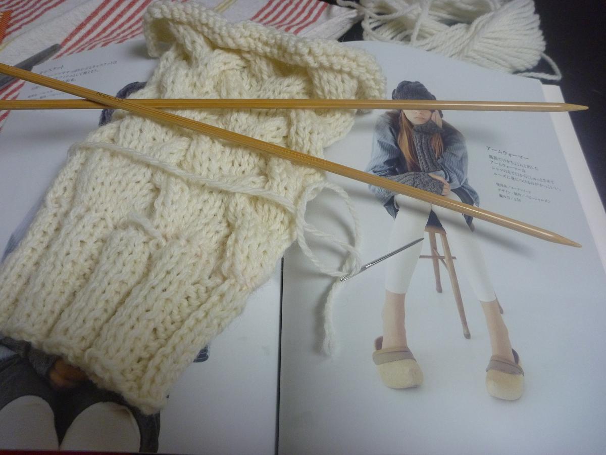 月曜日から自分用にアームウォーマーを編み始めた