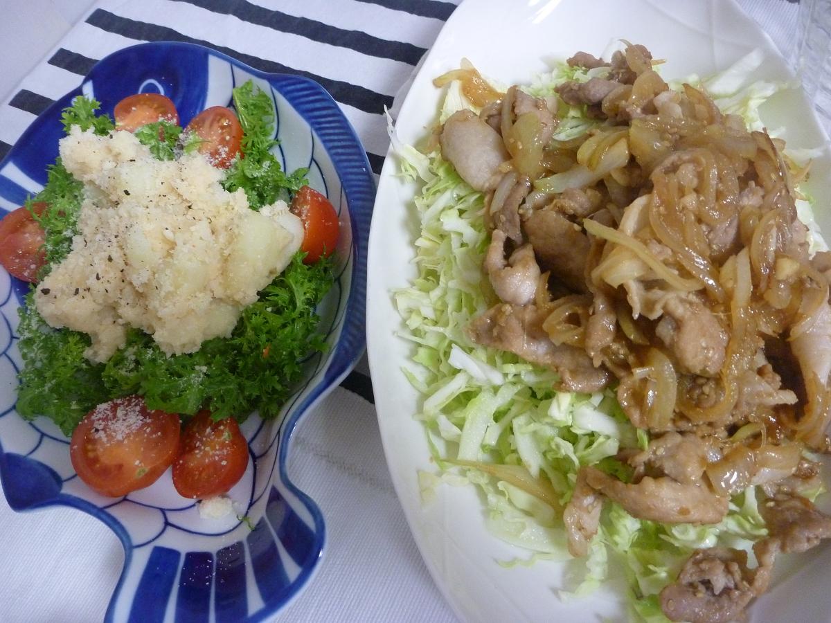 昨日の我が家の晩御飯はしょうが焼き&たらもサラダ キャベツもりもり食べれるね~