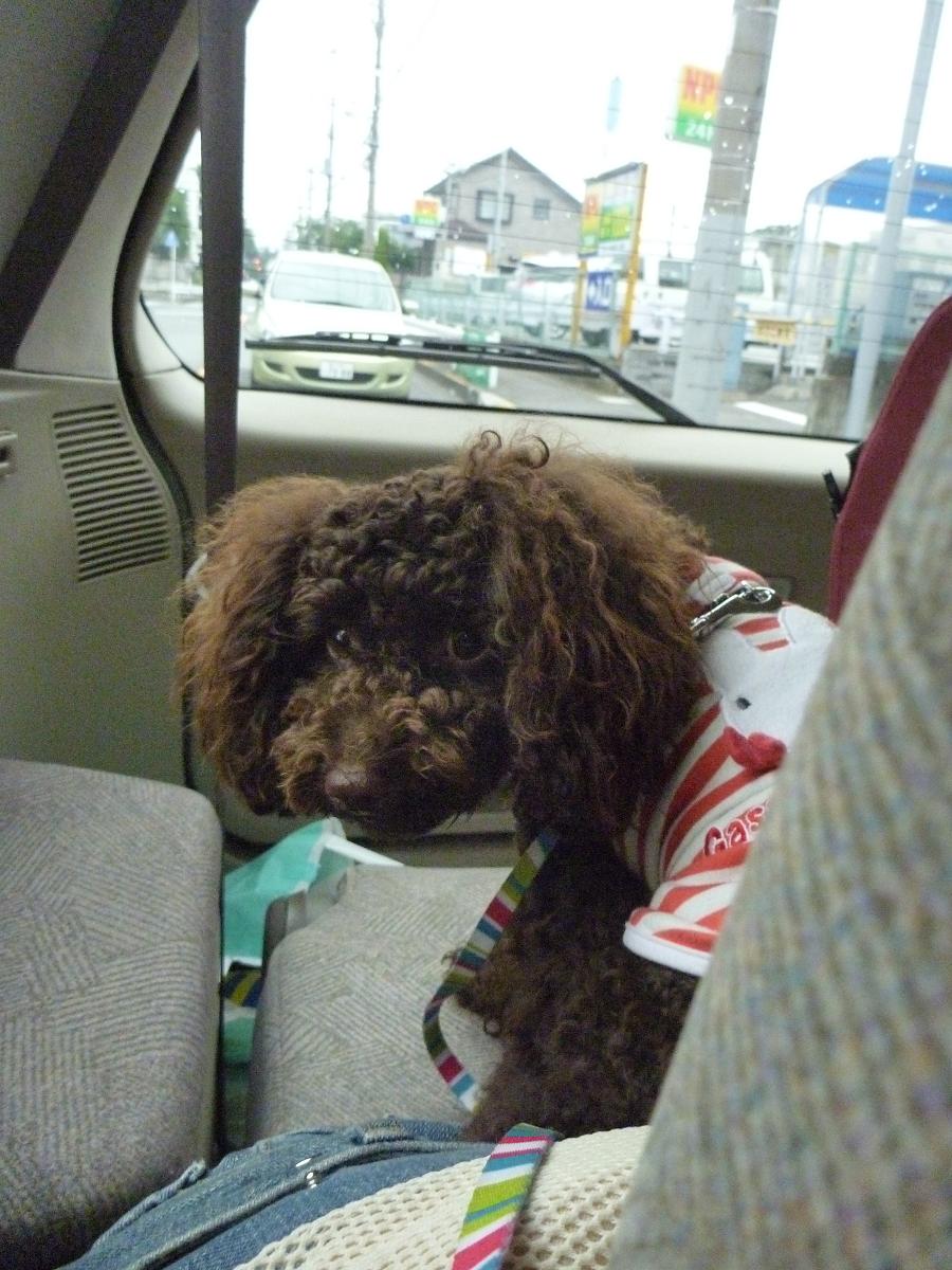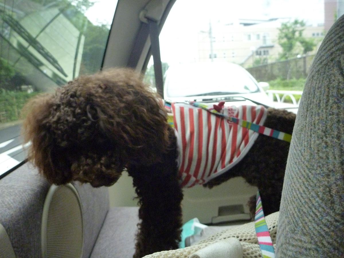 お散歩の後、駒沢公園へ向かう車中で・・・