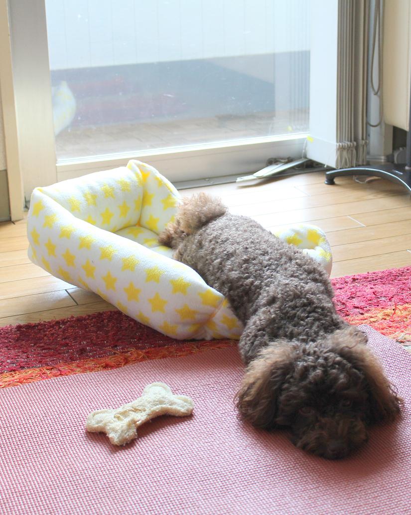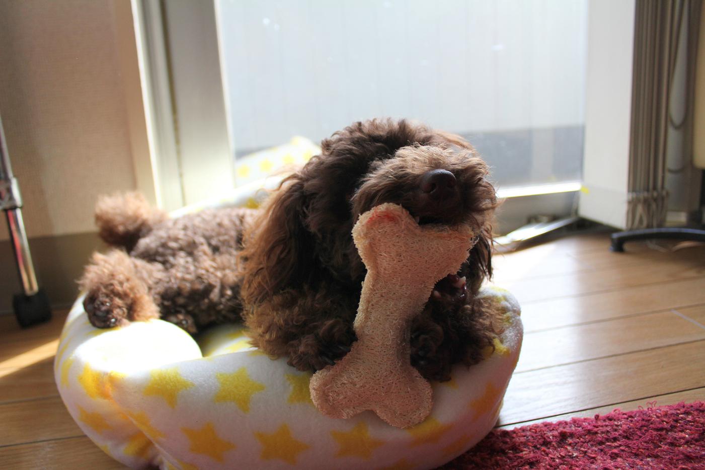 天気のいい日は、日向ぼっこ 時々へちまをガジガジして・・・ あ~つまんね~ そんなパピコの昼下がり。