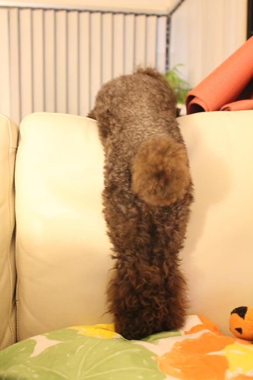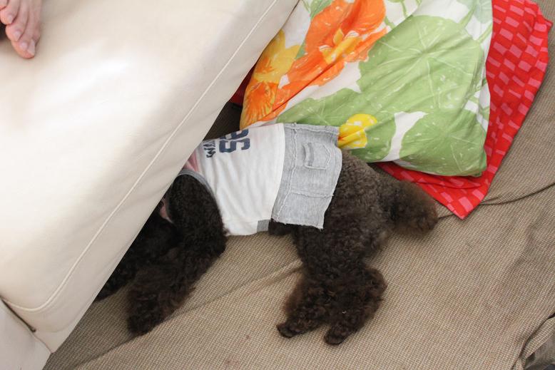 最近のパピコのお気に入りの寝床 ソファーの下に頭だけ入れてお休み中zzz 涼しいのかな?
