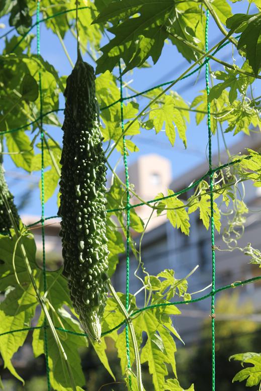 ヒヅメに夢中 ここで、家のゴーヤ君、大きくなってます♪